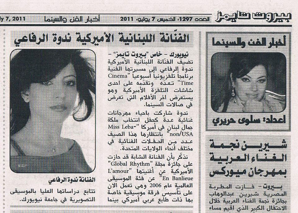 Nadwa interviewed live on Orbit TV that broadcasts from Beirut, Lebanon internationally by the Lebanese hosts Ragheda Shalhoub and Grace Beaklini where she discusses her journey to the United States and her award winning song L'amour en Banlieue. Wissam Sabbagh is a co-guest.