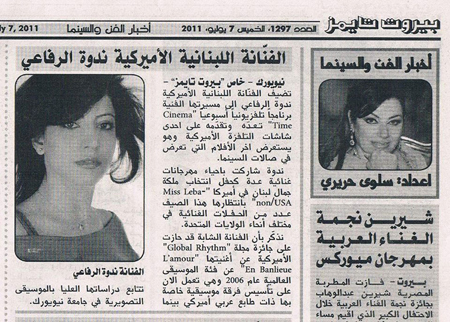 Nadwa interviewed live on Lebanon's national TV by Carlos Azar where she discusses her award winning song L'amour en Banlieue which she she co-wrote and sang with the French artist Jacques Pardo and won the Global Rhythm Magazine/ Sonic Bids award under the category of World Music.