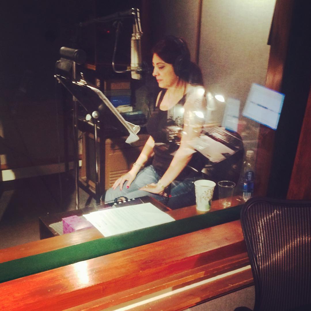 Nadwa on set recording voice over work in formal Arabic in an NYC studio (Spring, 2017)